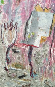 Von Freitag 27.06.2025 bis Sonntag 29.06.2025 von 11 – 18 Uhr in der Kleine Waldschänke in Klingberg (Scharbeutz), Seestrasse 56/Ecke Uhlenflucht Handschrift aus Acryl, Stiften,Aquarell, Textilien, Folie und Pflanzen.